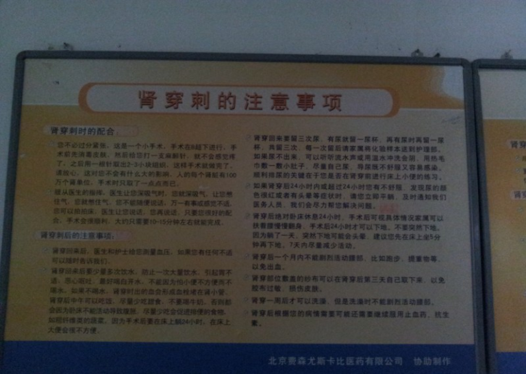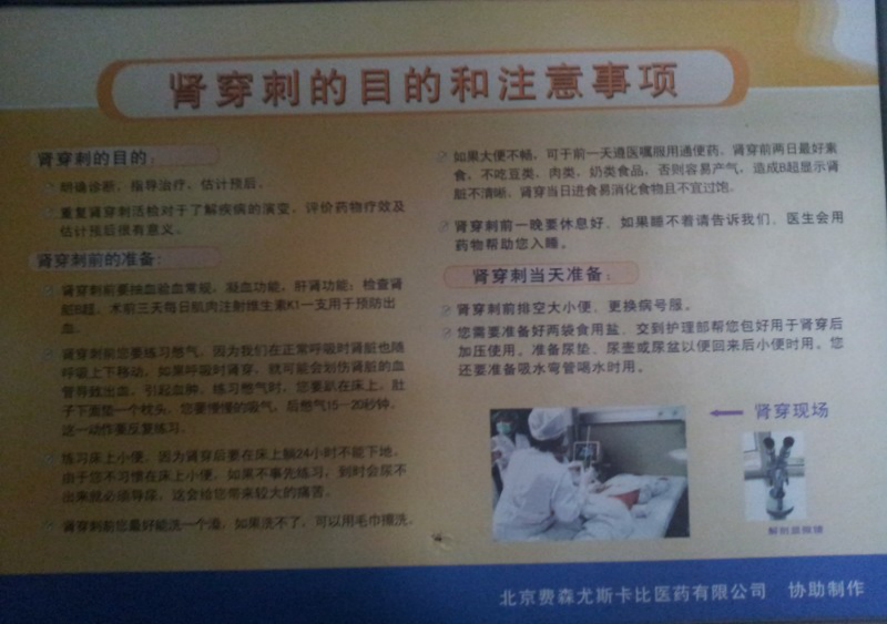 一穿难逃对于肾穿,我本能地十分抗。因为常年白血球低,大夫说要做骨穿,我一直坚持着没做,不也活了好几十年吗?可大夫一脸严肃地告诉我,得了这个病不做是肯定不行的。我的病史应该很长了,因为发病时还伴有血尿、高血压和管型改变,预后怕不是太好。只有做了肾穿,才能确定病因和肾的损伤程度,开展针对性的治疗,否则病情难控,后果难料。